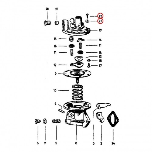 Kit includes all the fixings required to secure the fuel pump top in position, perfect for use when restoring 25 and 30hp pumps.