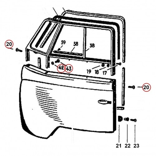 Kit contains all the required fixings to secure both upper window frames to the cab doors.