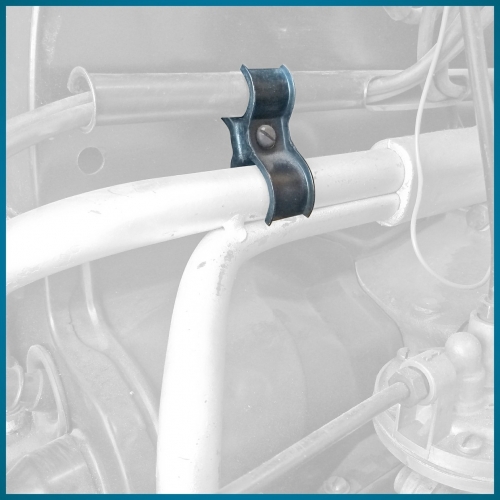 Top quality reproduction of the clamp that holds the ignition cable tube to the inlet manifold on all 25 and 30hp engines.