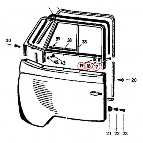 Kit contains all the fixings required to secure both lower channels to the cab door upper window frames.