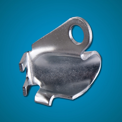 Handbrake cable securing bracket in the rear left brake backing plate.