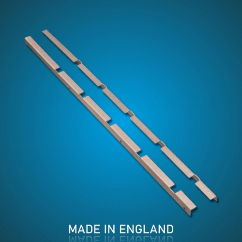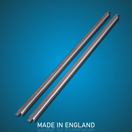 Cab door divider bar for retaining the rubber seal between the fixed and sliding cab door glass. Laser cut and CNC folded in 0.7 mm stainless steel. Made in England. more info
