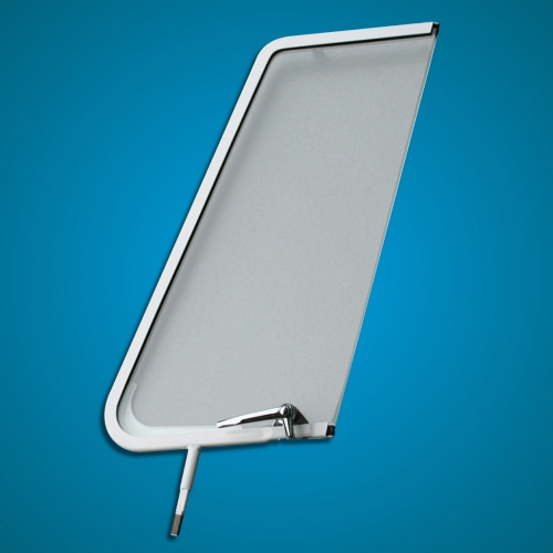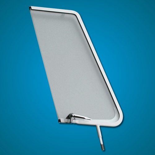 Complete right side quarter light from Wolfsburg West with white frame, including glass, seal and catch. Fits splitscreen busses from 1952 to 1967. PLEASE NOTE THAT GLASS PRODUCTS ARE NOT COVERED BY OUR COURRIER INSURANCE AND ARE THEREFORE SHIPPED AT THE PURCHASERS ... more info