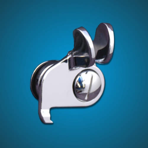 Quarter light catch. In chrome, originally used on Kombis, microbusses and deluxe microbusses. Fits the left side quarter light on splitscreen busses from 1952 to 1967. more info